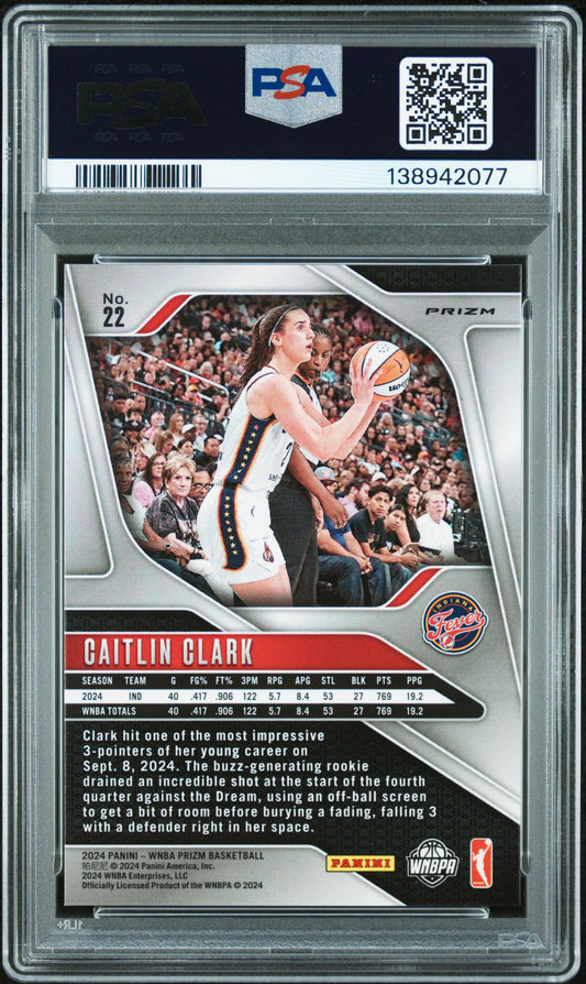 2024 Panini Prizm Wnba Silver Prizm Caitlin Clark #22 PSA 8